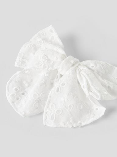 Otroška dekliška špangivca za lase v obliki pentlje, z all over luknjičastim vzorcem. Univerzalna velikost. Material: 80% bombaž, 20% kovina