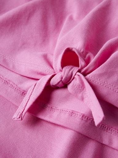 Otroška dekliška modna majica iz prijetnega bombaža, povezana v vozel na sprednjem delu, rahlo širši kroj s spuščenimi rameni, dolg rokav. Material: 100% bombaž