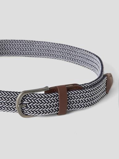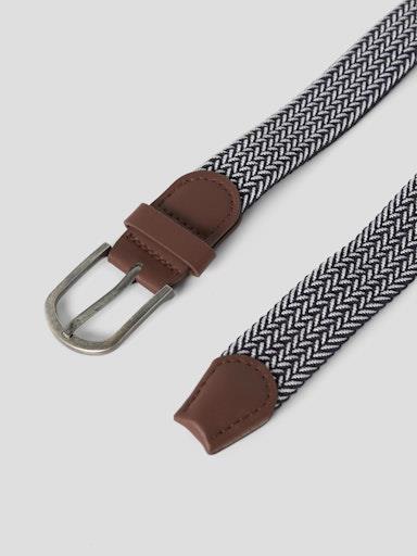 Otroški fantovski pas iz pletenega mehkega materiala, s kovinsko zaponko in detajli iz usnja. Material: 62% polipropilen, 25% poliuretan, 13% elastodin. Velikosti: 55 = 5-7let (55 cm), 65 = 7-9 let (65 cm), 75 = 9-12 let (75 cm)