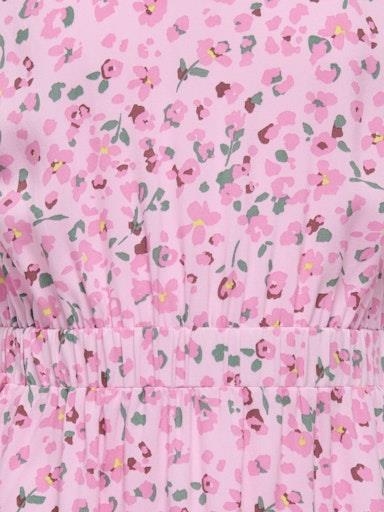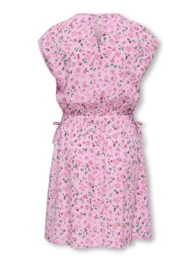 Otroška dekliška modna obleka blagovne znamke KIDS ONLY, iz prijetne in lahke viskoze, z all over vzorcem, z elastiko v pasu, zapenjanje na gumbe zadaj, dolžina do kolen, kratek rokav. Material: 100% viskoza LENZING™ ECOVERO™