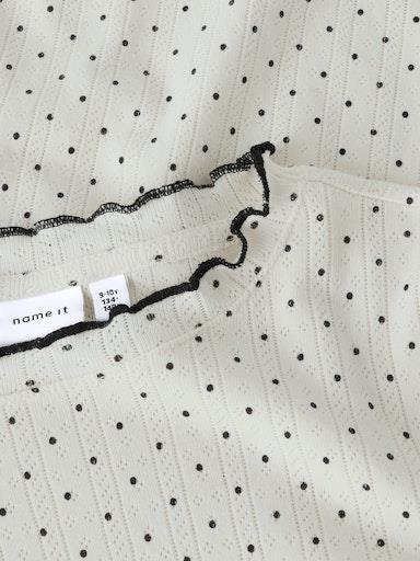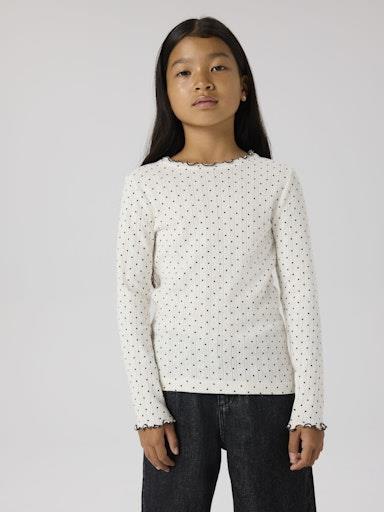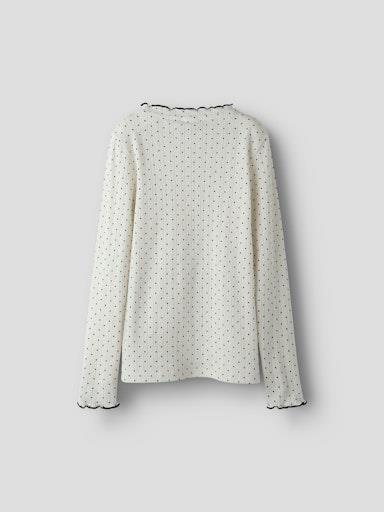 Otroška dekliška modna majica iz prijetnega ekološkega bombaža, z all over pikastim vzorcem, iz prijetnega strukturiranega materiala, s kontranstno obarvanimi zaključki, slim kroj, dolg rokav. Material: 100% ekološki bombaž