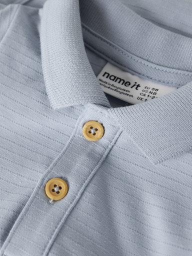 Otroški fatovski body s polo ovratnikom, iz prijetnega rahlo strukturiranega ekološkega bombaža, zapenjanje z gumbi spredaj, regular kroj, kratek rokav. Material: 95% ekološki bombaž, 5% elastan
