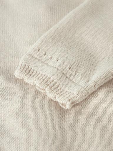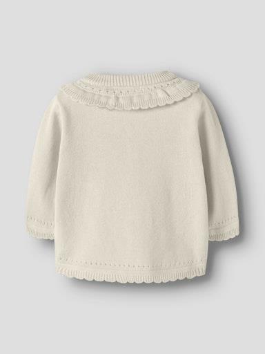 Otroška dekliška pletena jopa blagovne znamke LIL' ATELIER, iz fine in mehke pletenine, z mehkimi rebrastimi zaključki, z volančki, zapenjanje na gumbe spredaj, rahlo krajši in širši kroj, dolg rokav. Material: 80% ekološki bombaž, 20% recikliran bombaž