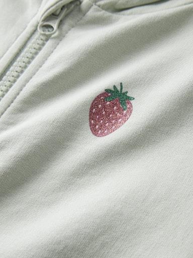 Otroška dekliška basic jopa s kapuco, zapenjanje na zadrgo, s potiskom z bleščicami spredaj, z dvema žepoma, s patentom na zaključkih, nekosmaten material, dolg rokav. Material: 60% bombaž, 40% poliester