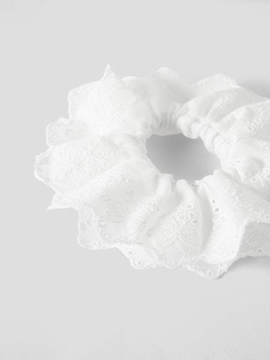 Otroška dekliška elastiko za lase - scrunchie, z izvezenim vzorcem in luknjičastimi detajli, univerzalna velikost. Material: 90% bombaž, 10% elastan