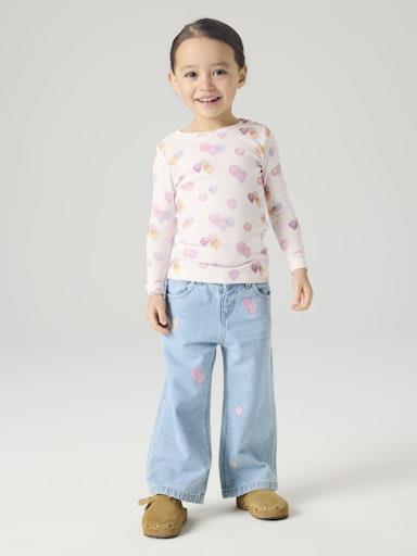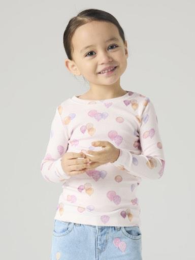 Otroška dekliška modna majica iz prijetnega in udobnega materiala, z all over potiskom, slim kroj, dolg rokav. Material: 57% ekološki bombaž, 38% TENCEL™ liocel, 5% elastan