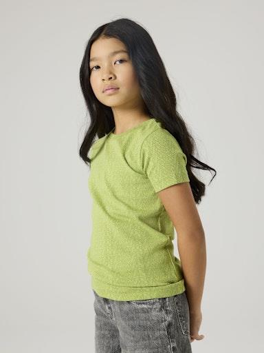 Otroška dekliška modna majica iz prijetnega in udobnega materiala, z all over potiskom, slim kroj, kratek rokav. Material: 57% ekološki bombaž, 38% TENCEL™ liocel, 5% elastan