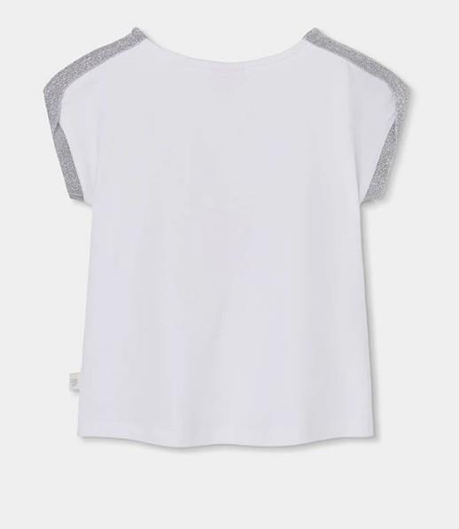 Otroška dekliška modna majica blagovne znamke BOBOLI, iz prijetnega in udobnega materiala, s potiskom spredaj, z našitimi bleščicami spredaj in z bleščičastim trakom na rokavih, z dekorativnim našitkom na strani, regular kroj, kratek rokav. Material: 92% bombaž, 8% elastan