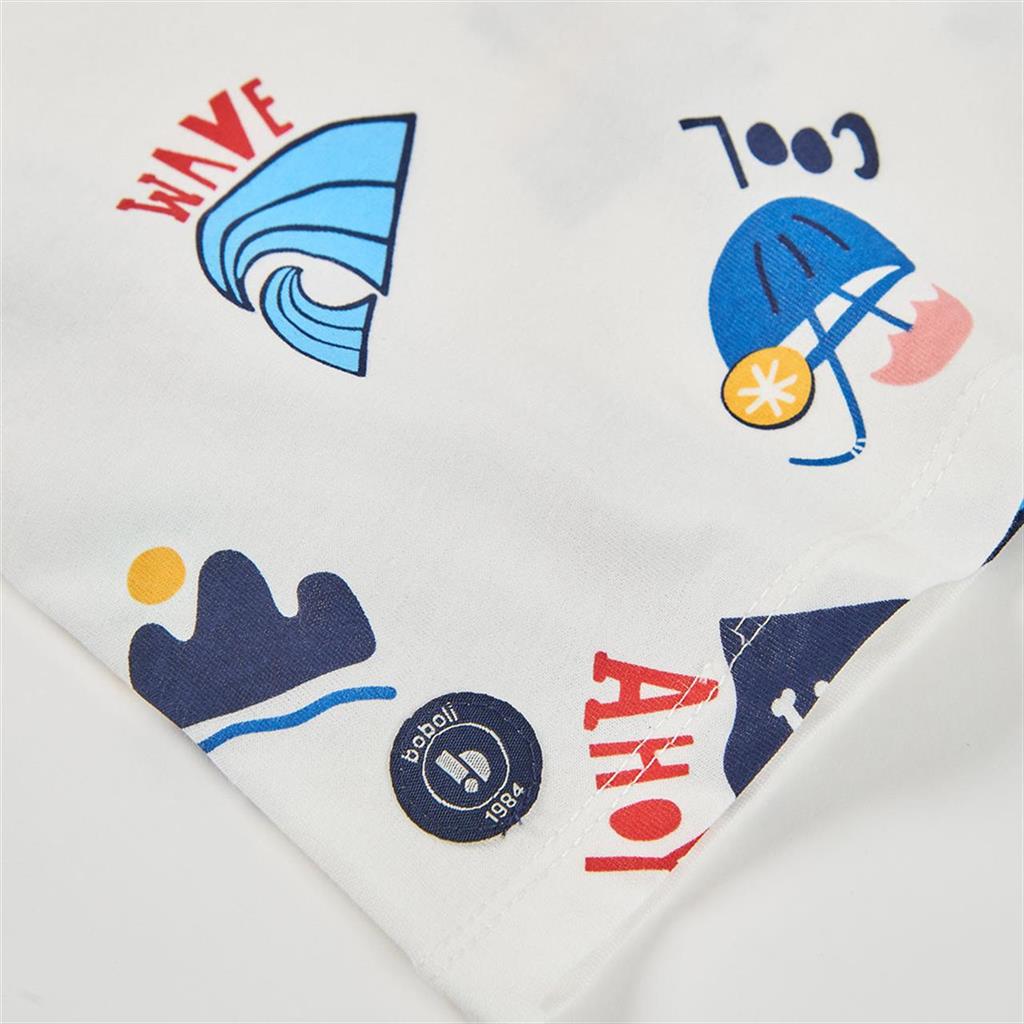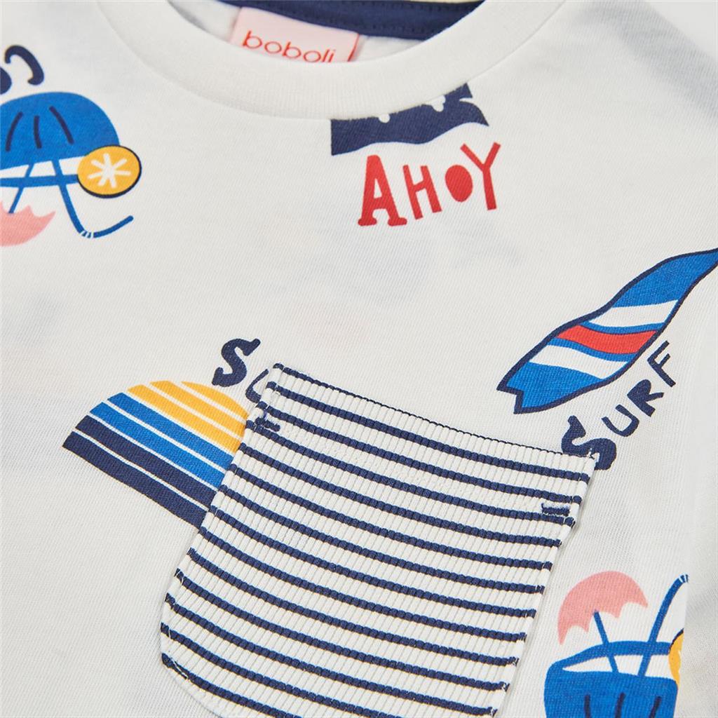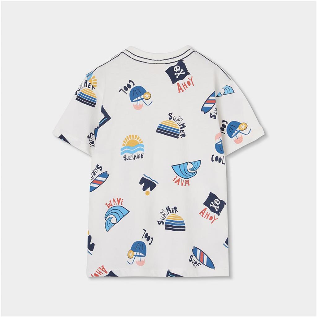 Otroška fantovska majica blagovne znamke BOBOLI, z all over poletnim potiskom, z žepom v viši prsi, regular kroj, kratek rokav. Material: 100% bombaž