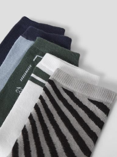 Otroške fantovske nogavice, 5 parov v pakiranju, različni vzorci. Material: 68% ekološki bombaž, 30% najlon, 2% elastan; 2,59€/par