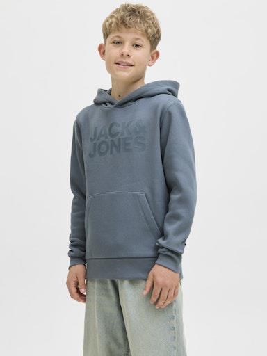 Otroški fantovski moden in udoben pulover s kapuco blagovne znamke JACK & JONES JUNIOR, rahlo kosmaten material, z logotiopm spredaj, s patentom na zaključkih, "kenguru" žep spredaj, dolg rokav. Material: 50% ekološki bombaž, 30% recikliran poliester, 20% bombaž